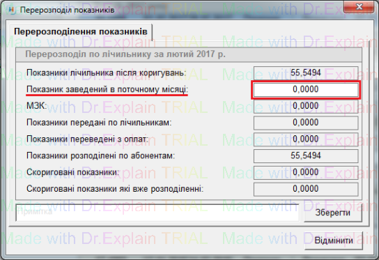 У вікні "Перерозподіл показників" обнулити показник "Показник заведений в поточному місяці", нажати "Зберегти", далі "ОК"
