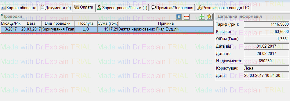 В картці ОР (даного будинку, по якому робили обнулення показника будинкового лічильника), у вкладці "Оплати" буде створена проводка"Коригування Гкал"