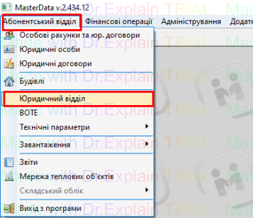 Для перегляду заведених справ по особовим рахункам, перейти у меню: