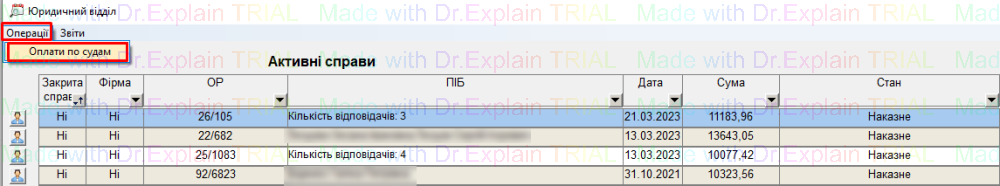Операції - Оплати по судам, відкриється вікно "Оплати по судам":