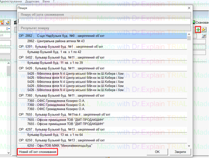 - Вибрати потрібну котельню і натиснути «+»,