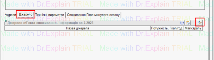 - Далі, на вкладці «Джерело» можемо прив’язати Котельню, для цього натиснути кнопку «листок з ручкою»: