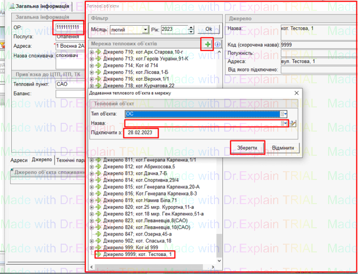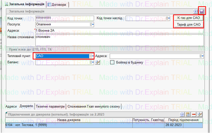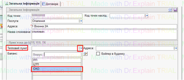 - У полі «Тепловий пункт» вибрати «САО»: