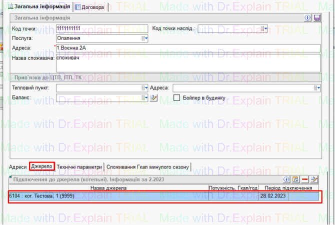 - Котельня відобразиться на вкладці «Джерело»: