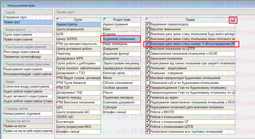 Для внесення дати зміни стану ознаки “з обслуговуванням ВКО”, спочатку потрібно надати користувачу право: