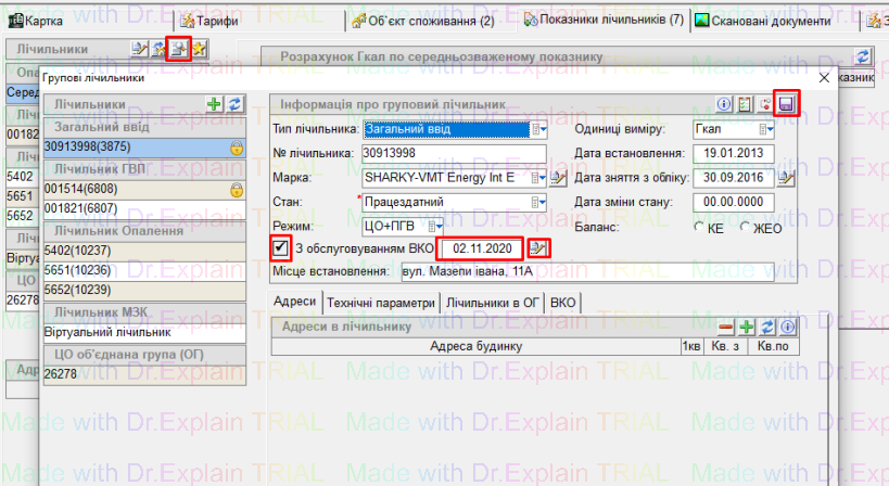 Робота з будинками — відкрити потрібний будинок — перейти на вкладку “Показники лічильників” - натиснути кнопку “лупа”: