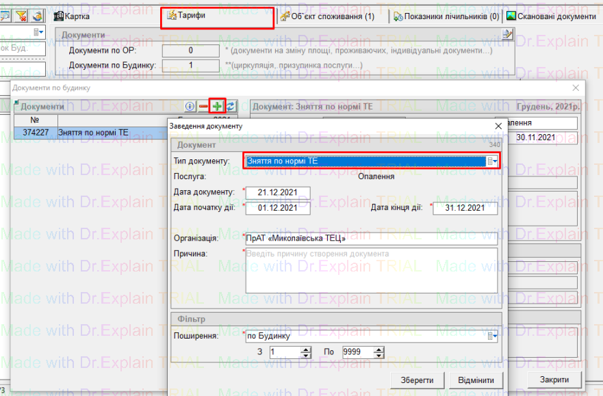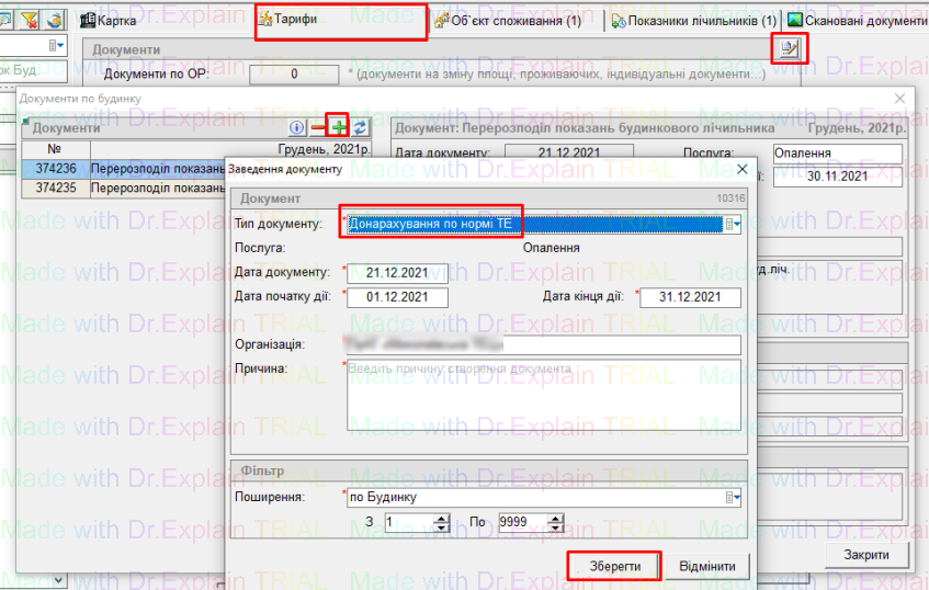 і далі зробити донарахування по нормі ТЕ, завівши документ з будинку: