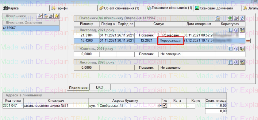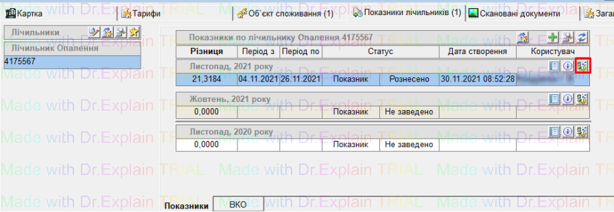 - перейти у роботу з будинками, вибрати потрібний будинок, і перейти на вкладку “Показники лічильників”: