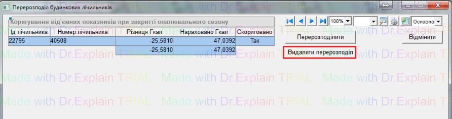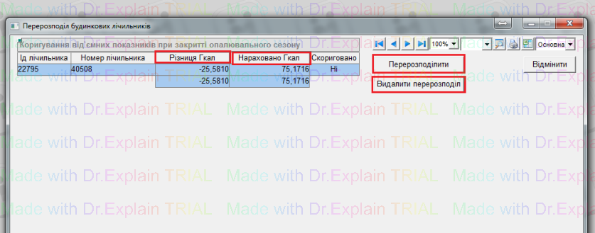 відкриється вікно “Перерозподіл будинкових лічильників”