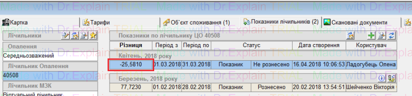 у даному вікні загрузяться всі лічильники по яких є від'ємні показники і відображено скільки було нараховано за минулий місяць по лічильнику