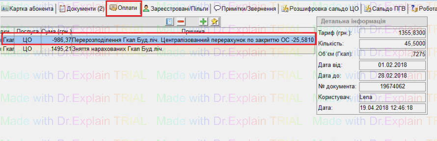 по особовим рахункам даного будинку, у вкладці “Оплати” буде створено проводку: