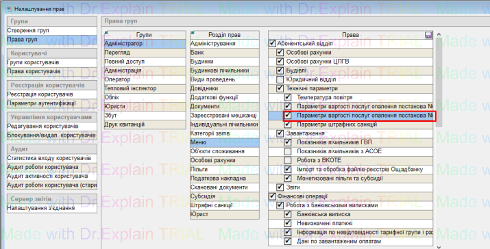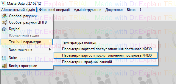 2. Далі: користувачу надати права до меню «Параметри вартості послуг опалення постанова №830»