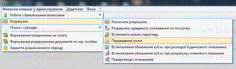 Для того, щоб перевести в куби або в Г.кал, заходимо в меню Фінансові операції — Розрахунок — Переведення оплат: