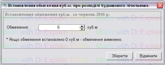 Встановлення обмеження куб.м при розподілі будинкового лічильника