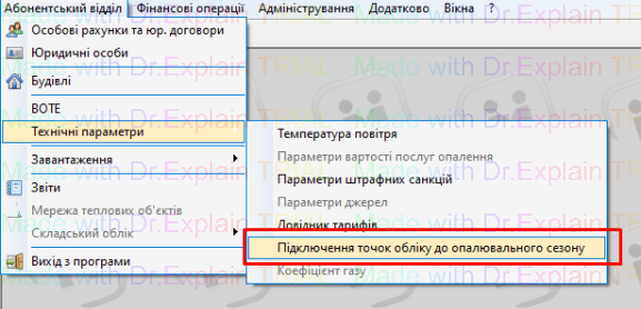 Абонентський відділ — Технічні параметри — Підключення точок обліку до опалювального сезону: