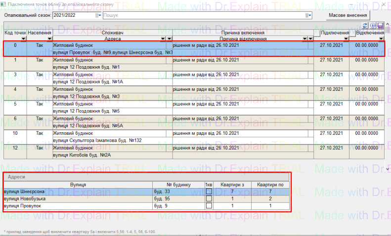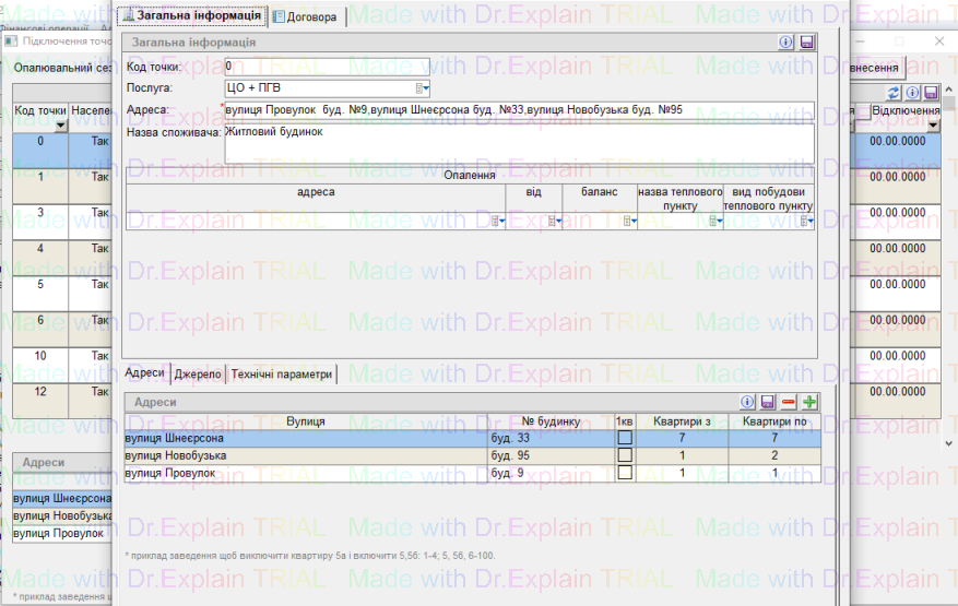 Відкриється вікно з списком точок обліку, та прив’язаними до них адресами: