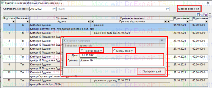 Для підключення точок обліку до опалювального сезону:
