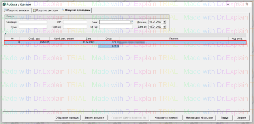 1. Якщо при завантаженні виписки помилково ввели не вірний ор, наприклад ввели "2617001", а треба було "2617002", і платіж потрапив у "Невизначені платежі".