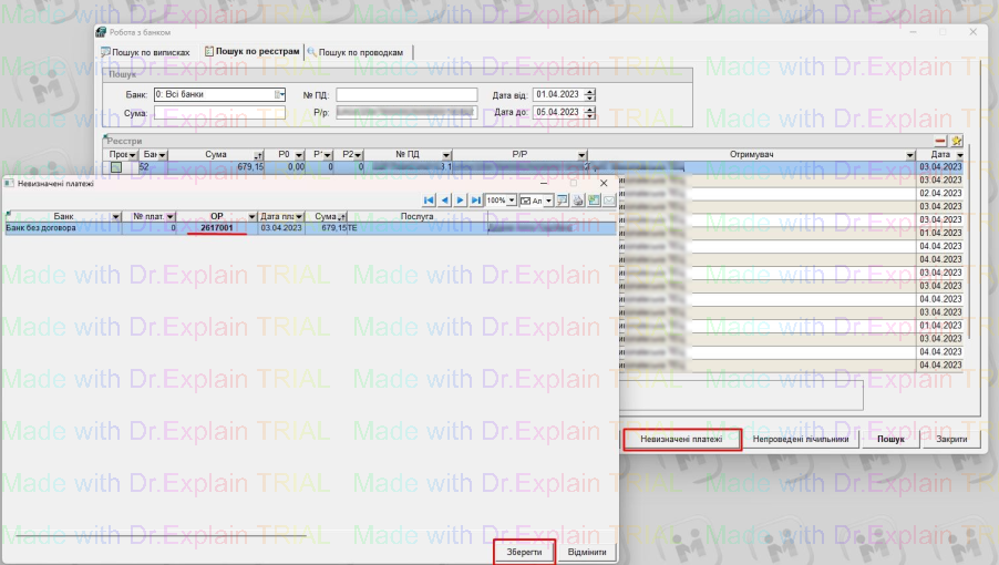 - переходимо у "Невизначені платежі",