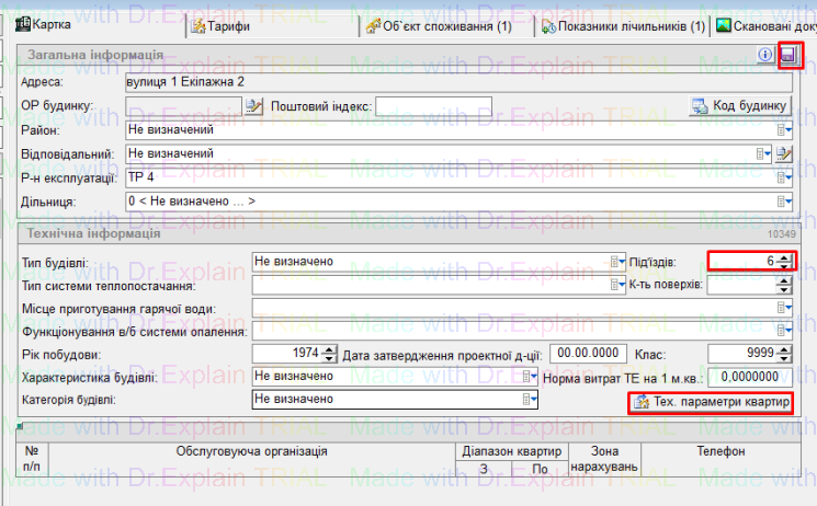 ►Перше, що потрібно зробити — проставити кількість під'їздів. →зберегти (дискета у правому верхньому кутку).
