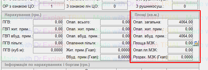 У блоці "Площі" можна буде побачити збережені Вами дані