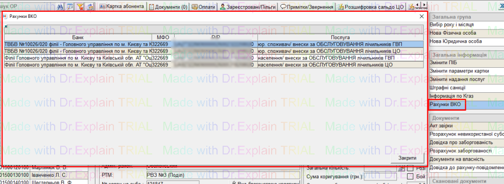 579 Перелік виставлених рахунків по договорах та групах споживачів