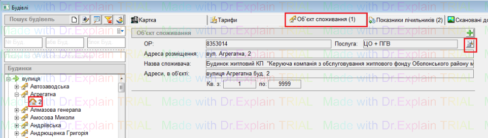 1) Перейти в роботу з будинками, далі на вкладку "Об'єкт споживання"