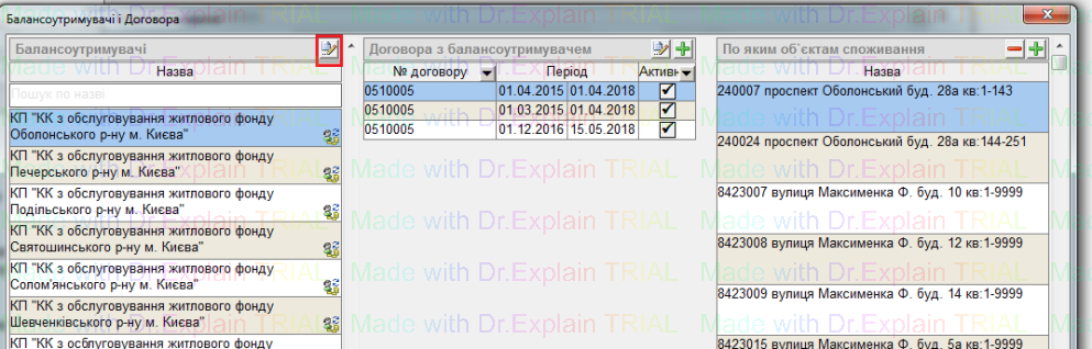 4) У вікні "Балансоутримувачі і договора", у блоці "Балансоутримувачі" нажати на кнопку "листок з ручкою", відкриється вікно "Редагування довідників"