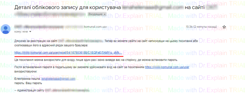 - Після цього, на вказану електронну пошту буде відправлено лист для завершення реєстрації;
