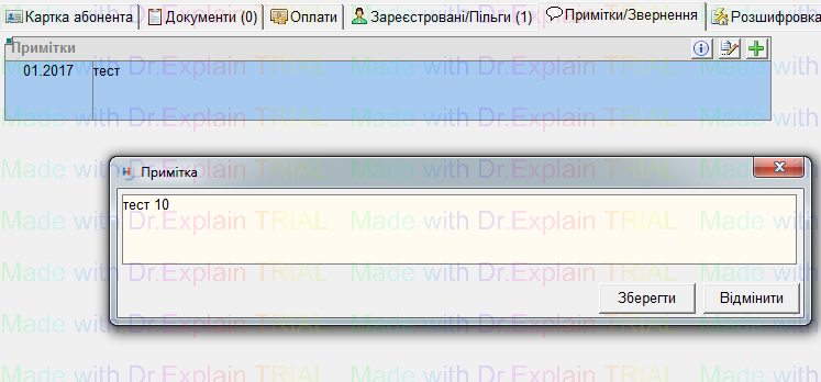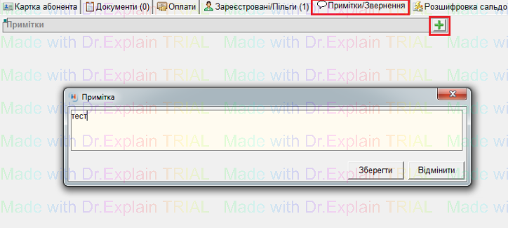 2. У вікні "Примітка" записати потрібну інформацію та нажати кнопку "Зберегти"