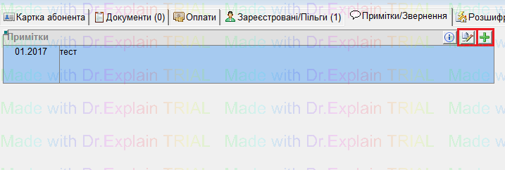 Для того, щоб видалити Звернення — виділити потрібний запис(звернення) і нажати на кнопку мінус "-".