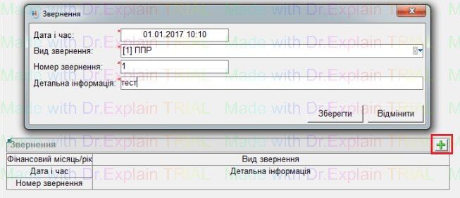 - напроти поля "Звернення" нажати на кнопку "+"