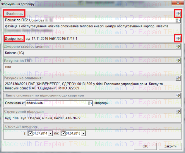 1) Для того, щоб вибрати фахівця (або додати нового фахівця/редагувати дані фахівця), натиснути кнопку "листок з ручкою" навпроти поля "Фахівець"