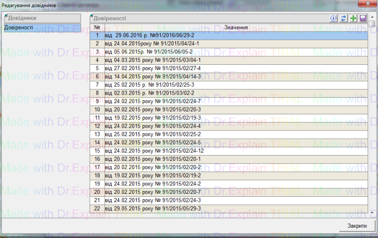 Для того, щоб додати нову довіреність, у вікні "Формування договору", навпроти поля "Довіреність", натиснути кнопку "Листок з ручкою", відкриється вікно
