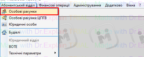 Абонентський відділ - Особові рахунки: