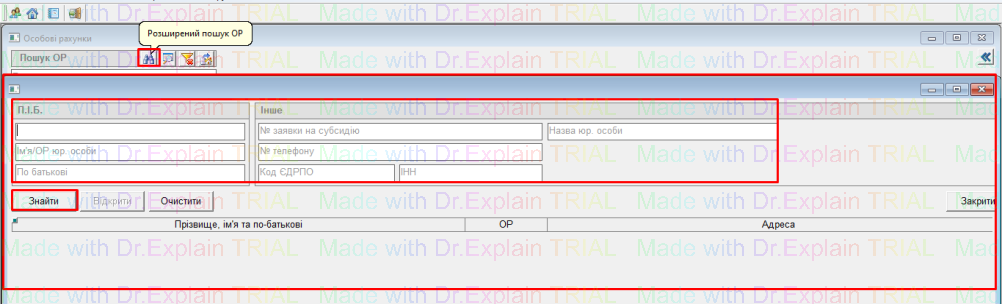 Також є розширений пошук ОР, для цього натиснути кнопку "бінокль":