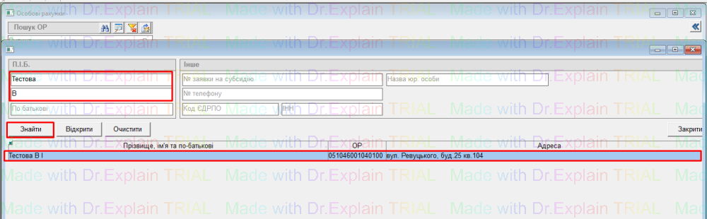 - або за номером особового рахунку (ввести номер ор і натиснути Enter на клавіатурі: