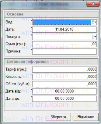 Поле "Причина" - запис інформації.