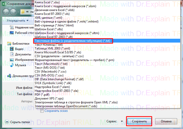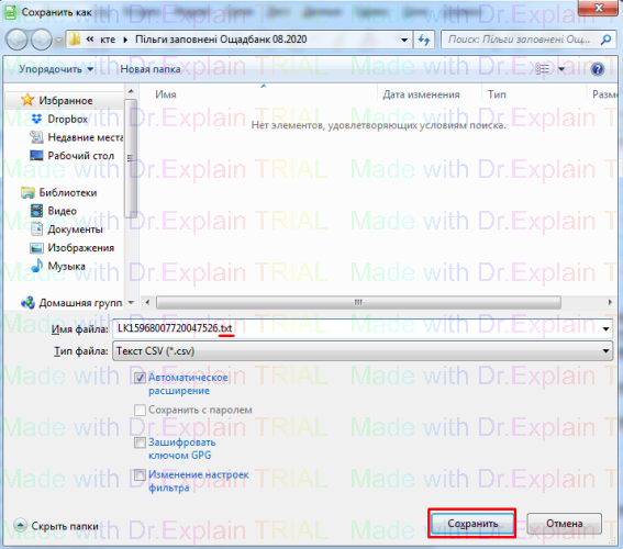 - у полі “Имя файла” змінюємо “csv” на “txt”, та натискаємо “Сохранить”: