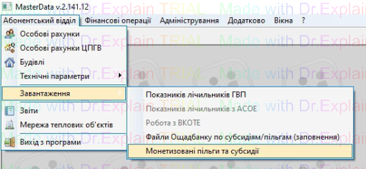 2) Заходимо у Меню: Абонентський відділ — Завантаження — Монетизовані пільги та субсидії:
