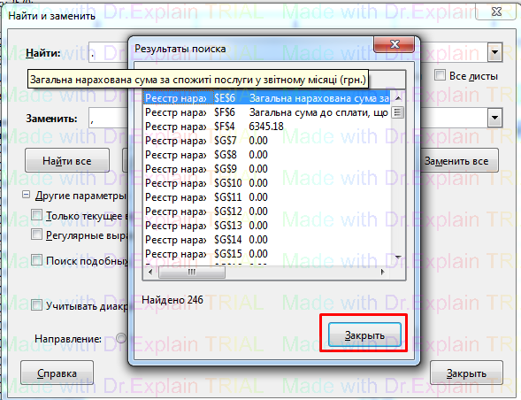 тут натиснути “Закрыть”, і далі натиснути “Заменить все”: