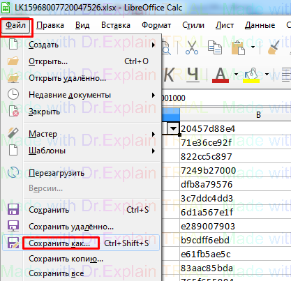 5. Далі відкриваємо у меню: Файл — Сохранить как: