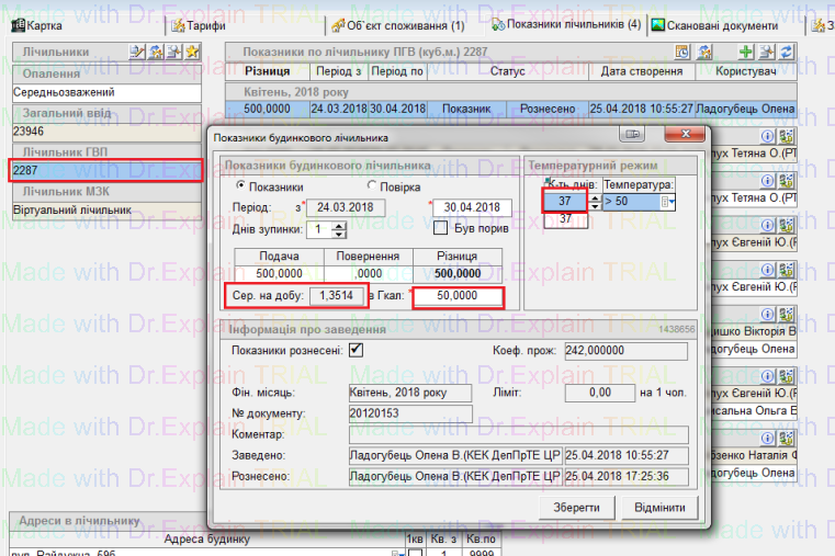 - Заведення показника по лічильнику ГВП: