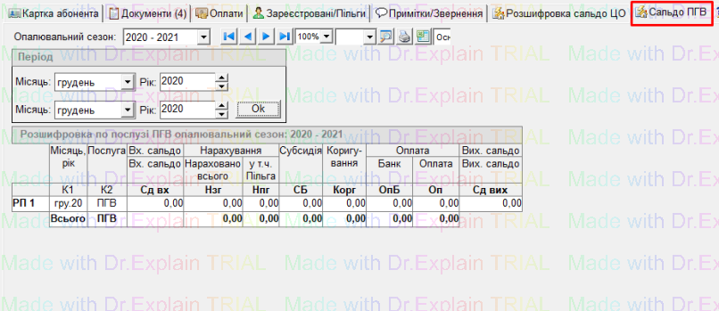Розшифровка по послузі ПГВ за опалювальний сезон