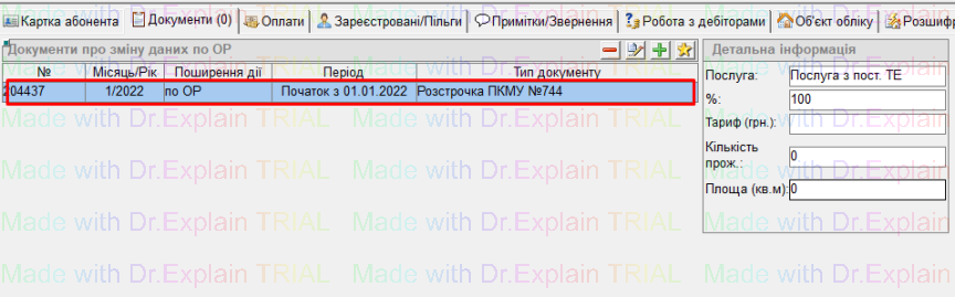 після цього у вкладці "Документи" буде відображений заведений документ "Розстрочка ПКМУ№744":