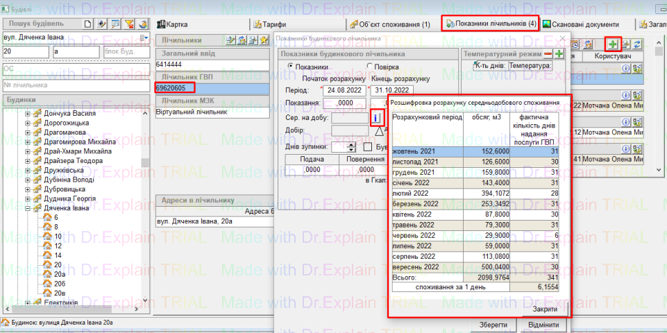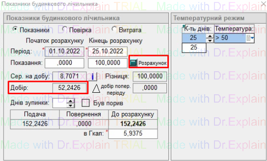 - і у вікні "Показники будинкового лічильника", біля пося "Сер. на добу", натиснути кнопку "і",