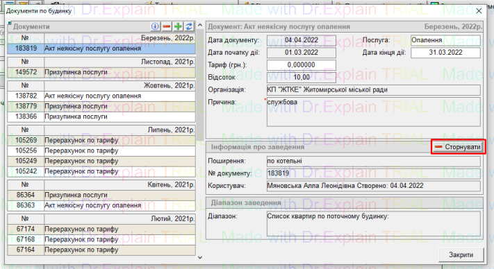 Сторнування акту неякісної послуги