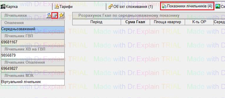 1) У меню перейти: Абонентський відділ — Будівлі, знайти потрібний будинок, і перейти на вкладку "Показники лічильників":