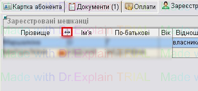 * Для того, щоб змінити ширину колонки, наводимо курсор миші на поле потрібної колонки, коли з'являється стрілочка, натискаємо ліву клавішу миші і збільшумо/зменшуємо колонку.