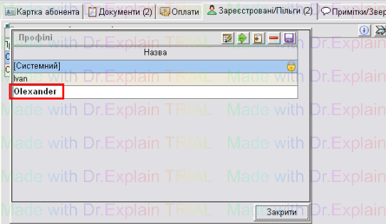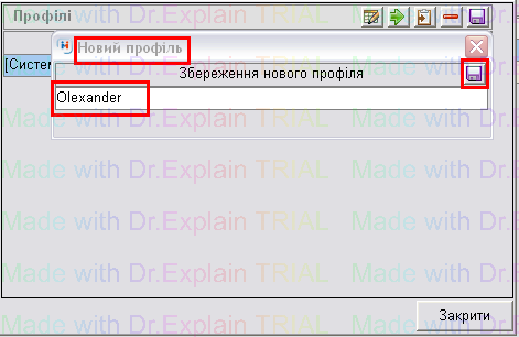 2) у вікні "Профілі" нажимаємо кнопку - дискета, і у новому вікні "Новий профіль" пишемо назву профіля, далі — зберегти (дискета),